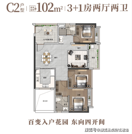动静分区明白,是这一户型的一大亮点。动区(客堂、餐厅、厨房)集中正在入户一侧,静区(卧室)分布正在另一侧,互不干扰,了歇息的私密性取恬静。从卧带有卫浴,提拔了仆人的栖身取便当性,迟早高峰期无需列队期待。两个卫生间的设想,完全处理了多生齿家庭的洗漱难题。客堂开间宽敞,毗连大阳台,采光通风结果极佳,视野宽阔,让旷神怡。